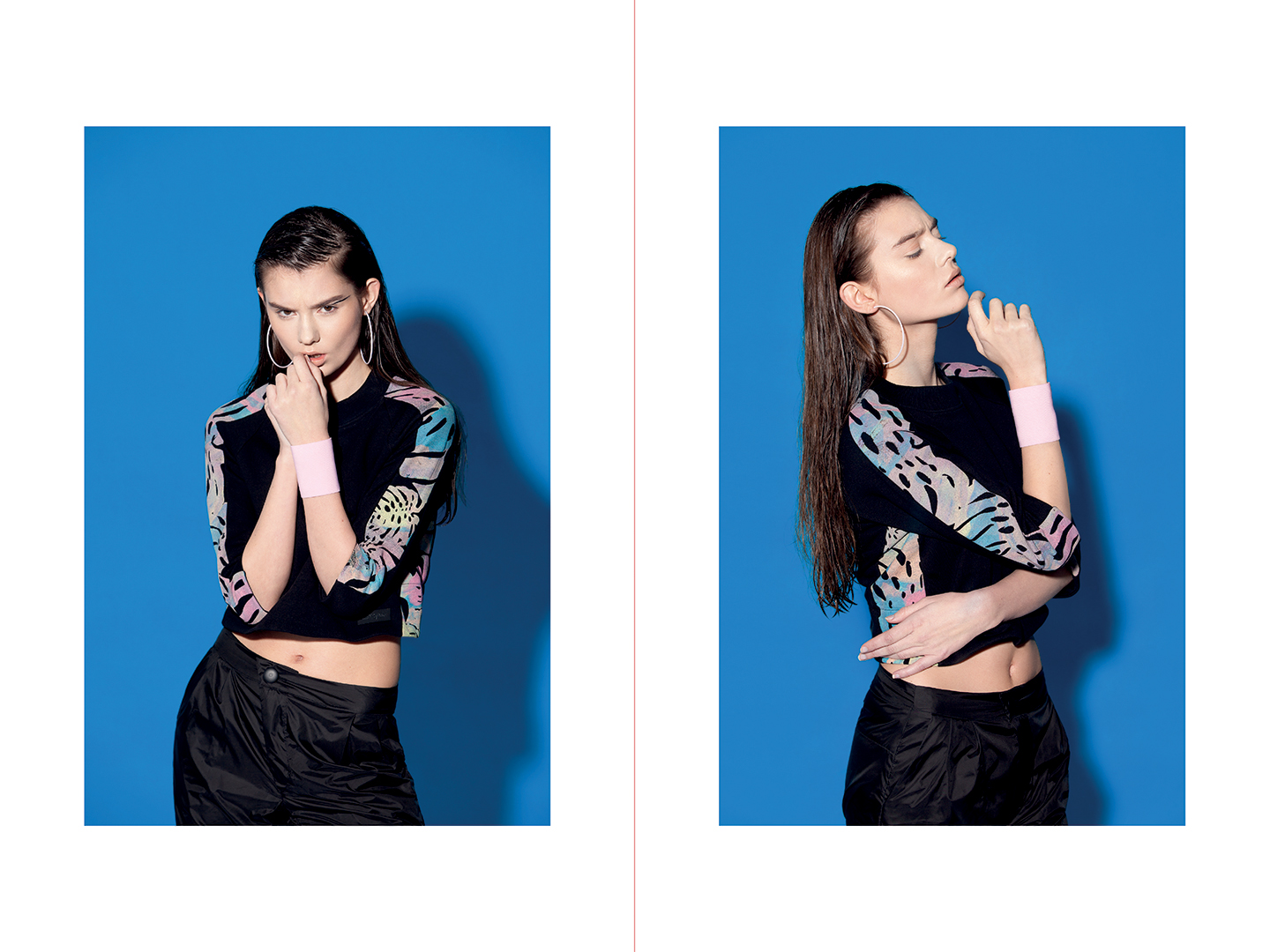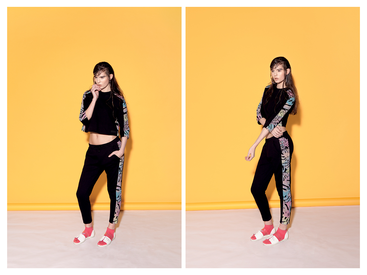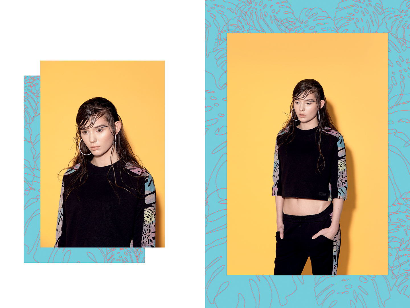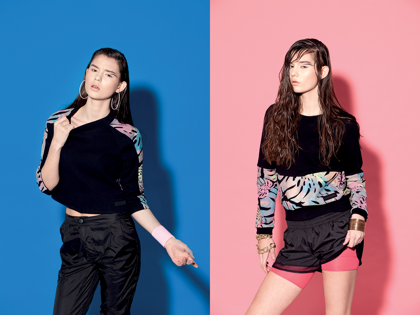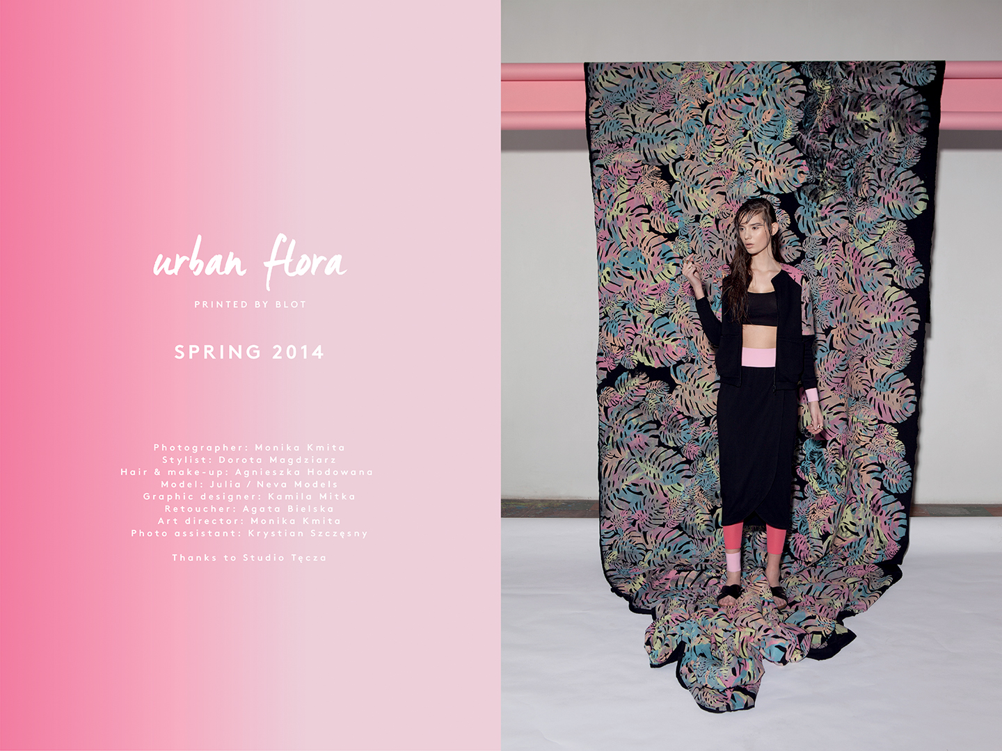 Z dziewczynami spotkałam się w piątek – 14 marca – podczas uroczystego otwarcia ich pracowni mieszczącej się przy ul. Marszałkowskiej 34/5 w lokalu nr 3. Zajadając sałatkę z bananów i pomarańczy, rozmawiałyśmy o kolekcji URBAN FLORA, która tego dnia miała swoją premierę. Główną inspiracją były właśnie tropiki, a konkretnie – liść bananowca. Jego skomplikowana geometryczna forma stała się pretekstem do stworzenia multibarwnego nadruku – o dziwo – na rzeczach… czarnych.