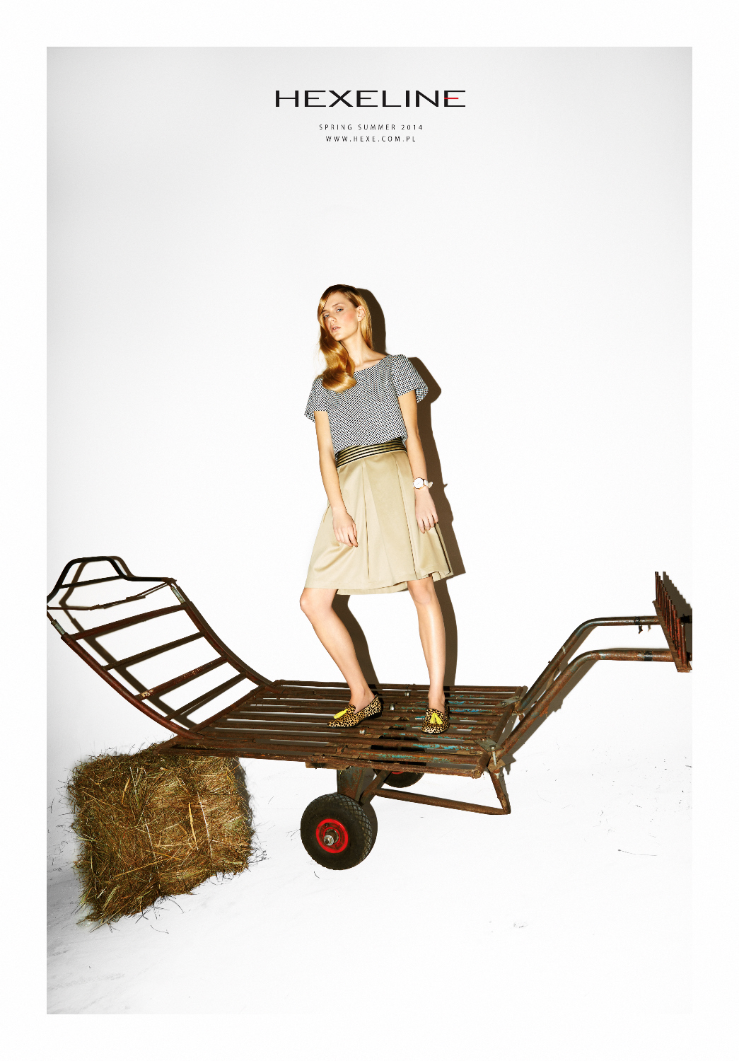 Będę szczera – kampania polskiej marki Hexeline na wiosnę i lato 2014 r. ujęła mnie przede wszystkim sielskim klimatem, na punkcie którego mam lekkiego bzika. Zapach siana, świeże powietrze i zwierzaki to mój przepis na dobre samopoczucie. W połączeniu z modą to już pełnia szczęścia. Folklor plus nowoczesne, minimalistyczne ubrania? Czemu nie, w końcu łączy je umiłowanie prostoty. W kolekcji dominują bluzki oversize, skromne sukienki i eleganckie spodnie. Wszystkie o nieskomplikowanych, acz świetnych fasonach i w większości utrzymane w stonowanych barwach (beże, szarości, biel i czerń) – od czasu do czasu wspieranych mocnym akcentem. Na pierwszy rzut oka niepozorna, kolekcja kryje w sobie sporo nowych trendów. Biel występuje w duecie z czernią, pojawiają się szerokie spodnie o długości maksi, falbany, ażury i kolor pomarańczowy. To coś dla miłośniczek klasyki, które wiedzą, co w modzie piszczy.