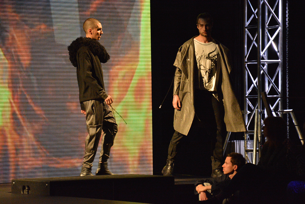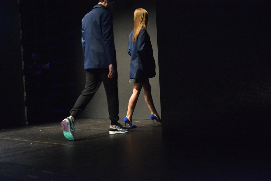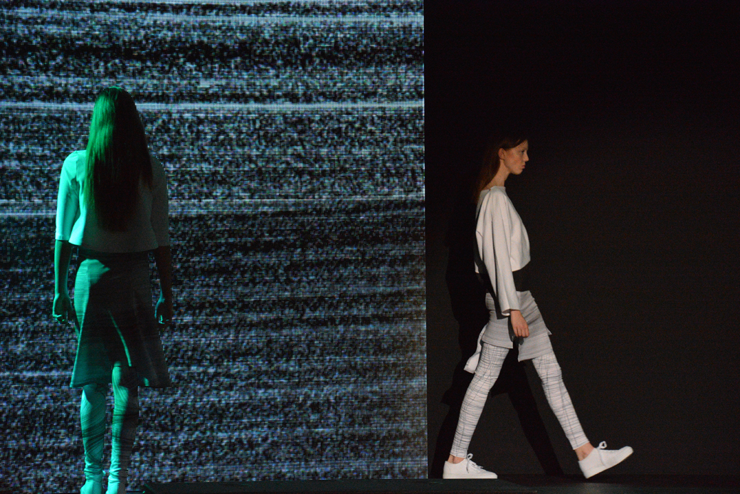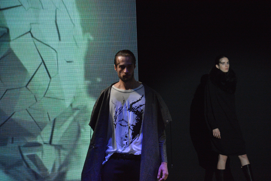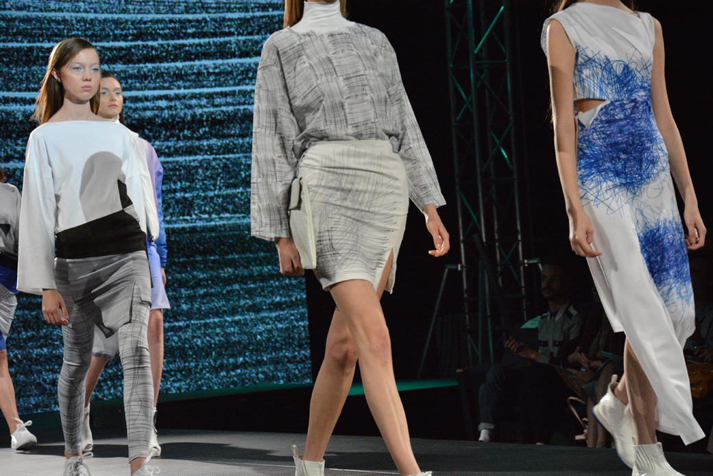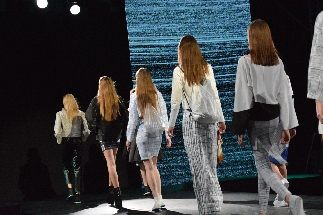 Oli Bajer (stojącej za marką Bola), czyli autorce kolejnej zaprezentowanej lini, udało się to nieco gorzej. Bo ona także sięgnęła po inspiracje sportowe (to zresztą jeden z głównych trendów powtarzających się podczas tegorocznego Tygodnia Mody – a mówiąc szczerze, nie tylko tegorocznego…), próbując zestawić je z formalnymi elementami stroju. W rezultacie modelki ubrane w dopasowane eleganckie spodnie i marynarki przechadzały się obok tych w bluzach i legginsach… Graficzne i geometryczne nadruki, choć efektowne, dawno już widzieliśmy. Także fasony nie wnosiły niczego nowego. Kolekcja poprawna i udana kolorystycznie (czerń, granat i fiolet ożywione srebrem) nie powaliła więc, choć pod względem formalnym nie można jej nic zarzucić.