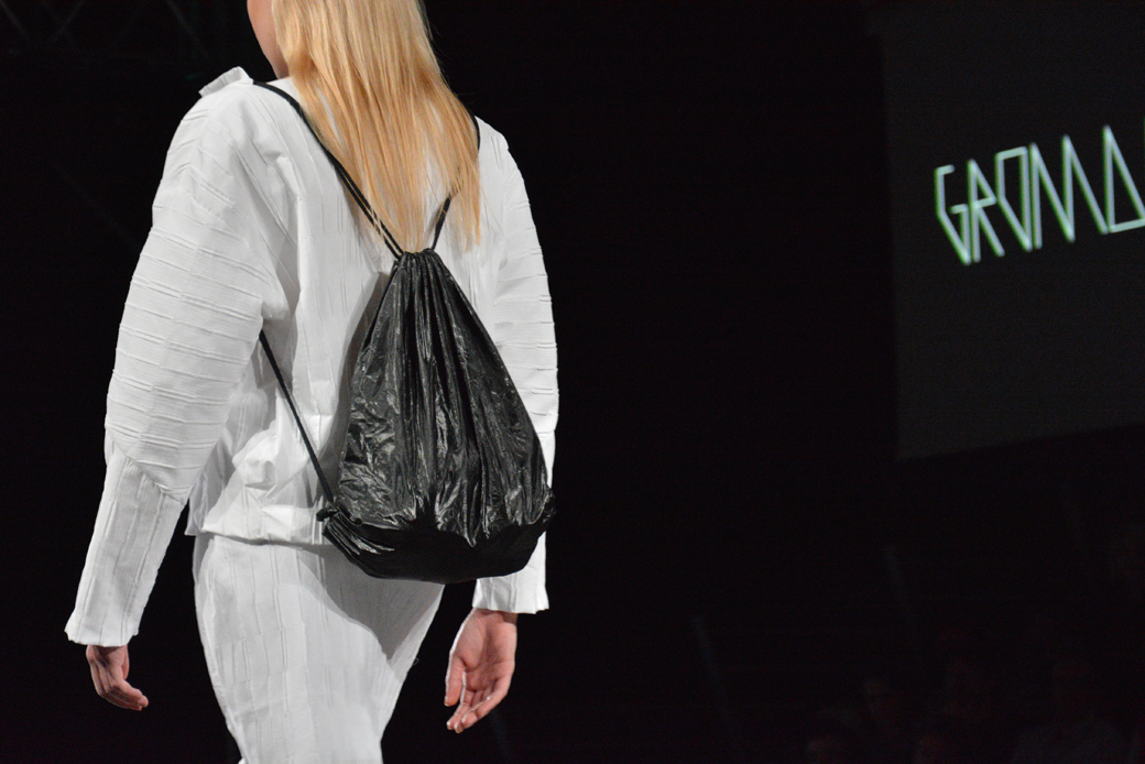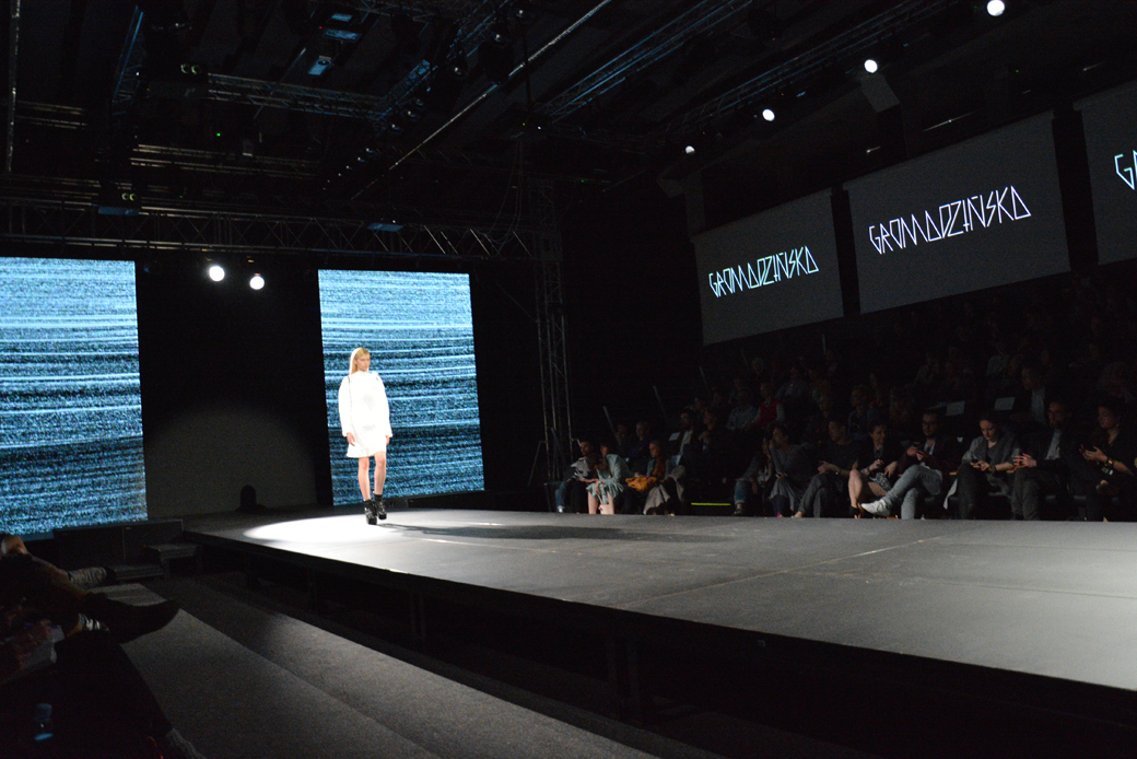 Kolekcja Moniki Gromadzińskiej „Bez tytułu“ pozytywnie mnie zaskoczyła. Może dlatego, że kiedy widziałam ją wcześniej podczas spotkania Rady Programowej, sprawiała wrażenie niechlujnej, a na pewno niedokończonej. Jednak projektantka stanęła na wysokości zadania i podczas Tygodnia Mody mogliśmy zobaczyć linię nie tylko gotową, ale i przemyślaną w pełni i dopracowaną – choć odwołującą się do pierwszego etapu procesu twórczego, wstępnych szkiców. Stąd nadruki przypominające kreski robione ołówkiem, które były jednym z elementów uspójniających kolekcję. Oprócz nich można było podziwiać dyskretne łukowe wycięcia z boków bluzek i sukienek czy przy rękawach bluz, trójkątne kawałki tkanin swobodnie zwisające z wybranych elementów garderoby, gniecenia materiałów i subtelne plisy. Dominowała biel, wspierana czernią, szarością i błękitem.