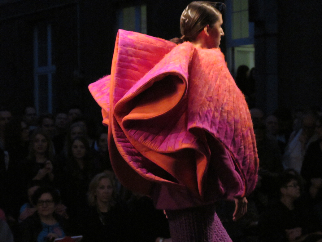 Projekty Joanny Wawrzyńczak były najbardziej nowoczesne, może dlatego że bazowały na geometrycznych kształtach i plastikowych elementach dekoracyjnych. A także bieli i czerni, czasem tylko ożywionych za pomocą lekko połyskującej mięty. Granica między aplikacjami na ubraniach i masywnej biżuterii uległa całkowitemu zatarciu.