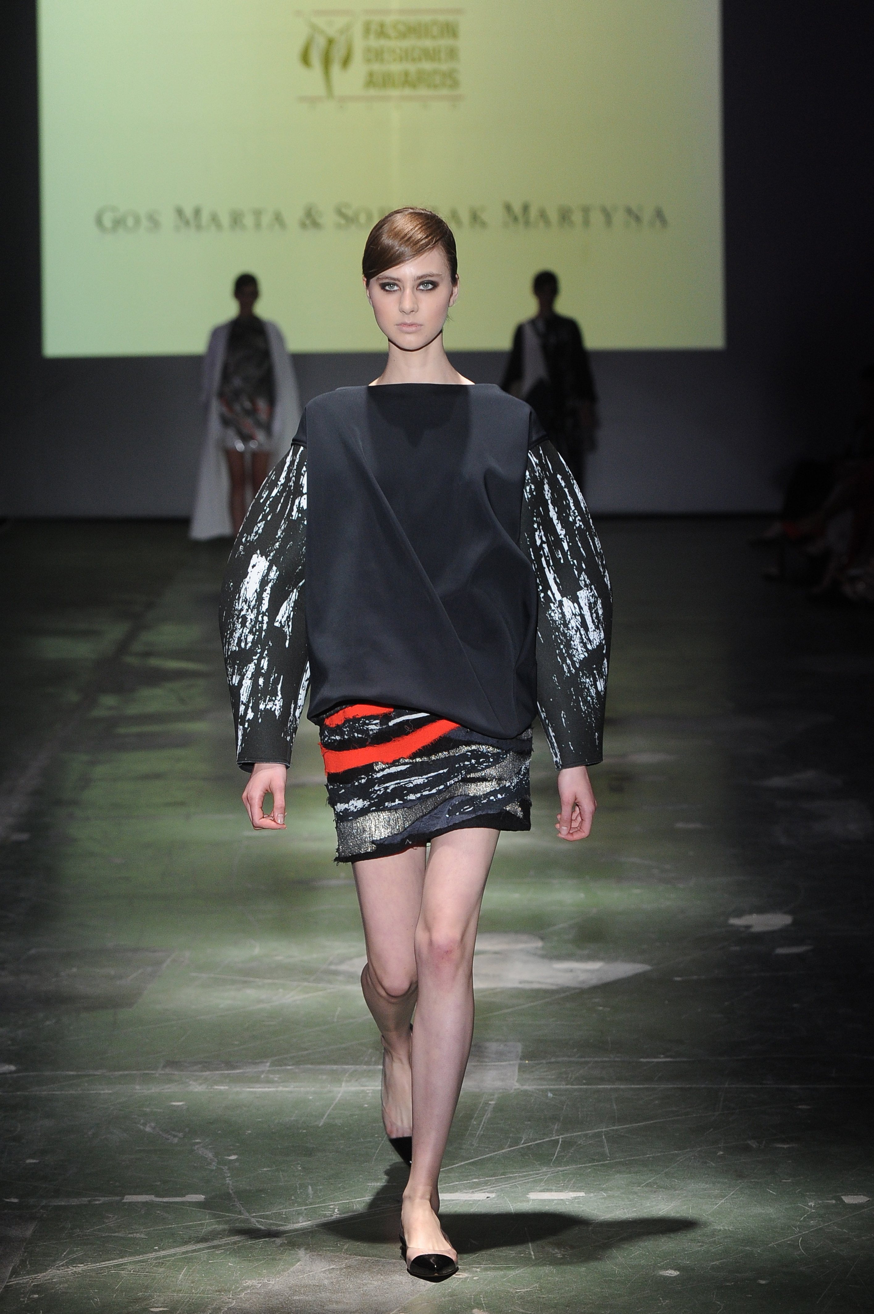 To osoby wyłonione spośród wszystkich zgłoszeń, a następnie półfinału konkursu, który odbył się nieco ponad miesiąc wcześniej w warszawskich Złotych Tarasach. Podczas finałowej gali Fashion Designer Awards w studio Domaniewska swoją interpretację jednej z najbardziej szykownych epok w modzie zaprezentowali: Zuzanna Kwapisz, Michał Wójciak, Aleksandra Ożarowska, Anna Kopeć, Agnieszka Gniłka, Marta Gos i Martyna Sobczak (w duecie), Klaudia Cichoń, Ewelina Wydra, Klaudia Bartmańska oraz Monika Sypuła. Pojawiły się więc frędzle, cekiny, geometryczne wzory i cięcia czy szlachetne nasycone kolory: kobalt, szmaragd, burgund i złoto, występujące obok klasycznych bieli i czerni. Projektanci wykazali się świetną znajomością historii mody, jednak niekiedy zadanie konkursowe potraktowali zbyt dosłownie. Dla mnie najciekawsze były pomysły tych, którzy zaczerpnąwszy inspiracje z lat 20. i 30., stworzyli kolekcje współczesne, a nawet nowatorskie. Zgodne z aktualnie panującymi trendami. Jedną z takich linii była ta autorstwa Marty Gos i Martyny Sobczak. Dziewczyny zdobyły największe uznanie jury. I to jury nie byle jakiego, bo składającego się z osób nie tylko uznanych w branży, ale i z sukcesami wykonującymi zawód projektanta m.in. Joanny Klimas, Dawida Tomaszewskiego, Łukasza Jemioła czy Agnieszki Maciejak. Na pierwszą nagrodę zasłużyły sobie, wykorzystując ultramodne nadruki imitujące efekt rozpryśniętej farby, poszukując nieoczywistych form oraz świadomie zapominając o wykończeniu wybranych fragmentów tkanin (strzępiły się np. krawędzie długiego białego płaszcza czy strukturalne faliste zdobienia sukienki mini).