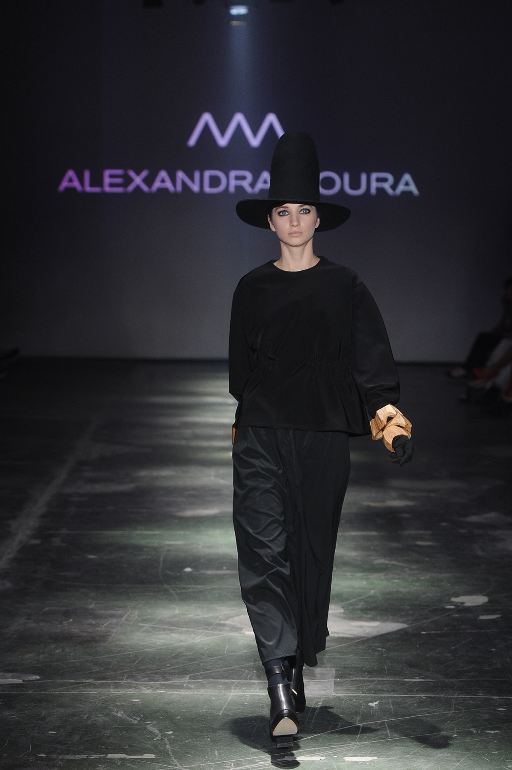 Ciekawym elementem i zwieńczeniem gali był pokaz jej gościa specjalnego – portugalskiej projektantki Alexandry Moury. Moura umiejętnie połączyła w jednej kolekcji grube, kloszardzkie swetry oversize i skromne sukienki w stylu pensjonarskim oraz szerokie spodnie do połowy łydki ze zwiewnymi spódnicami. Zadbała o wszystkie detale i elementy wykończenia ubrań oraz pamiętała o dodatkach – zawadiackich kapeluszach (przypominających nieco baśniowy klimat tych z pokazu Louisa Vuittona z dawnych lat) i pakownych torbach w miejskim stylu. Jeśli z bajki o muminkach, najbardziej lubiliście Włóczykija – ta kolekcja podbiłaby wasze serca! Tak jak moje.