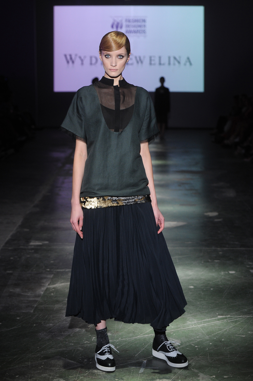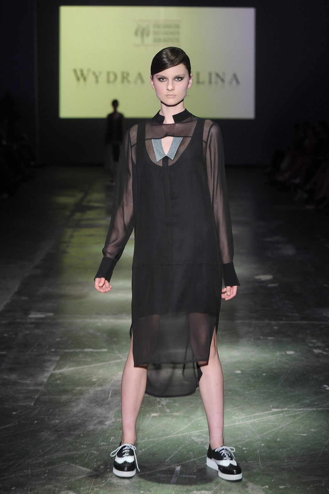 Druga nagroda trafiła do Eweliny Wydry, która sięgnęła po inspirację art deco, jednocześnie nadając ubraniom sznytu w męskim stylu. Hitem były buty oksfordki noszone (z grubymi skarpetkami) do siateczkowej prześwitującej sukienki zwieńczonej stójkowym kołnierzykiem niczym od koszuli.