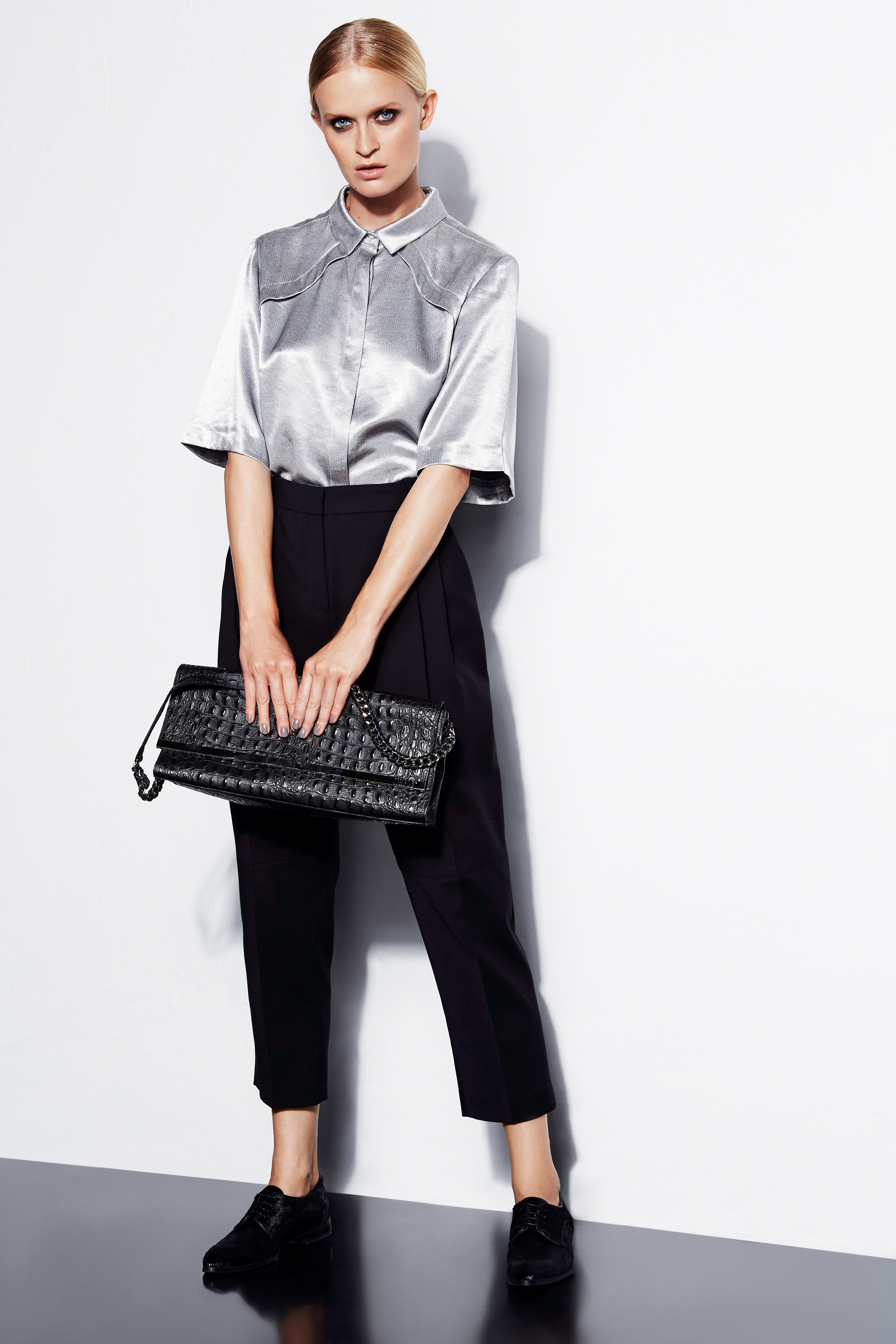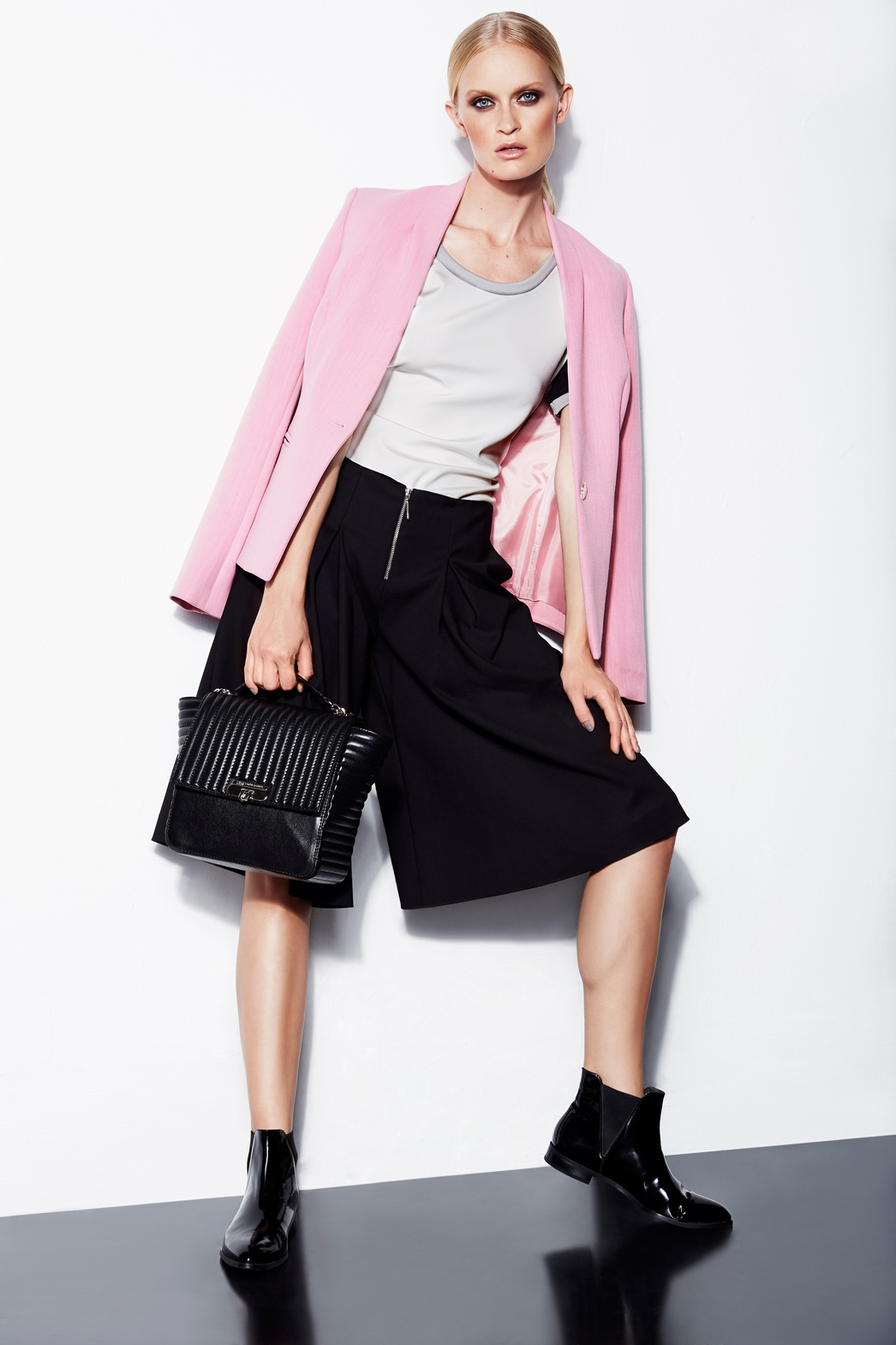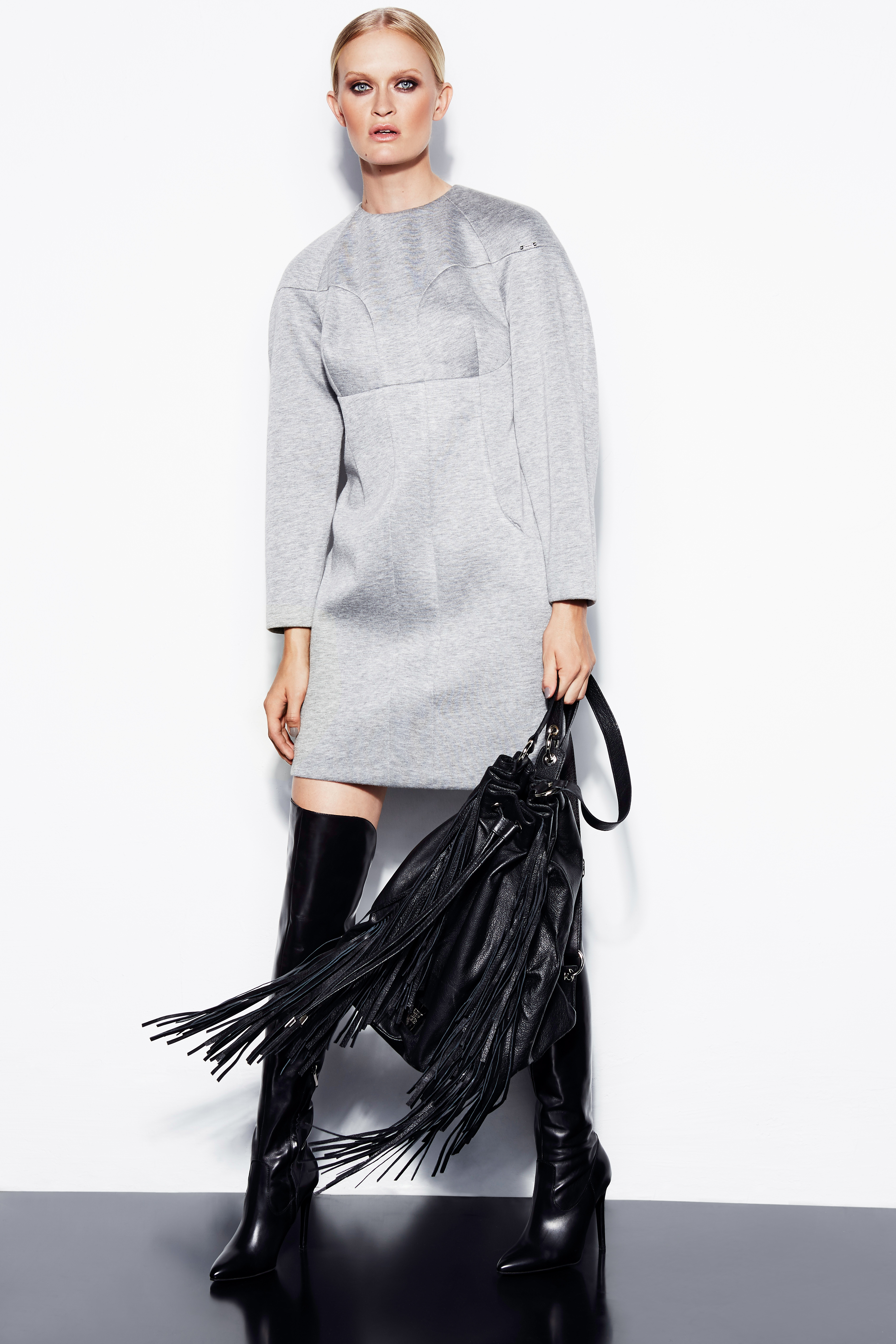 Mocną stroną kolekcji są detale – ciekawie poprowadzone cięcia, zaszewki i plisy tworzące strukturę strojów, skórzane wstawki oraz modne w tym sezonie suwaki pełniące nie tylko funkcję użytkową, ale i dekoracyjną. Równie ważne są tkaniny – futurystyczne połyskujące neopreny, nabłyszczane wełny, jedwabie przekornie zestawiane z dzianinami i babcinymi wełnami. Ciekawe połączenia są cechą charakterystyczną i atutem kolekcji. Moi faworyci? Szary sweter oversize w duecie z dopasowaną do sylwetki spódnicą uszytą z bardzo delikatnych cekinów przypominających łuskę, stylizacje w stylu boho, ale w nowoczesnym wydaniu i dopełnione torbami z milionem frędzli, akcesoria w duchu retro i sztyblety z mocnymi akcentami kolorystycznymi.