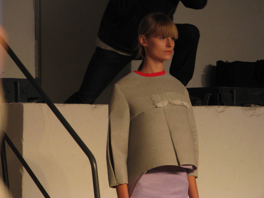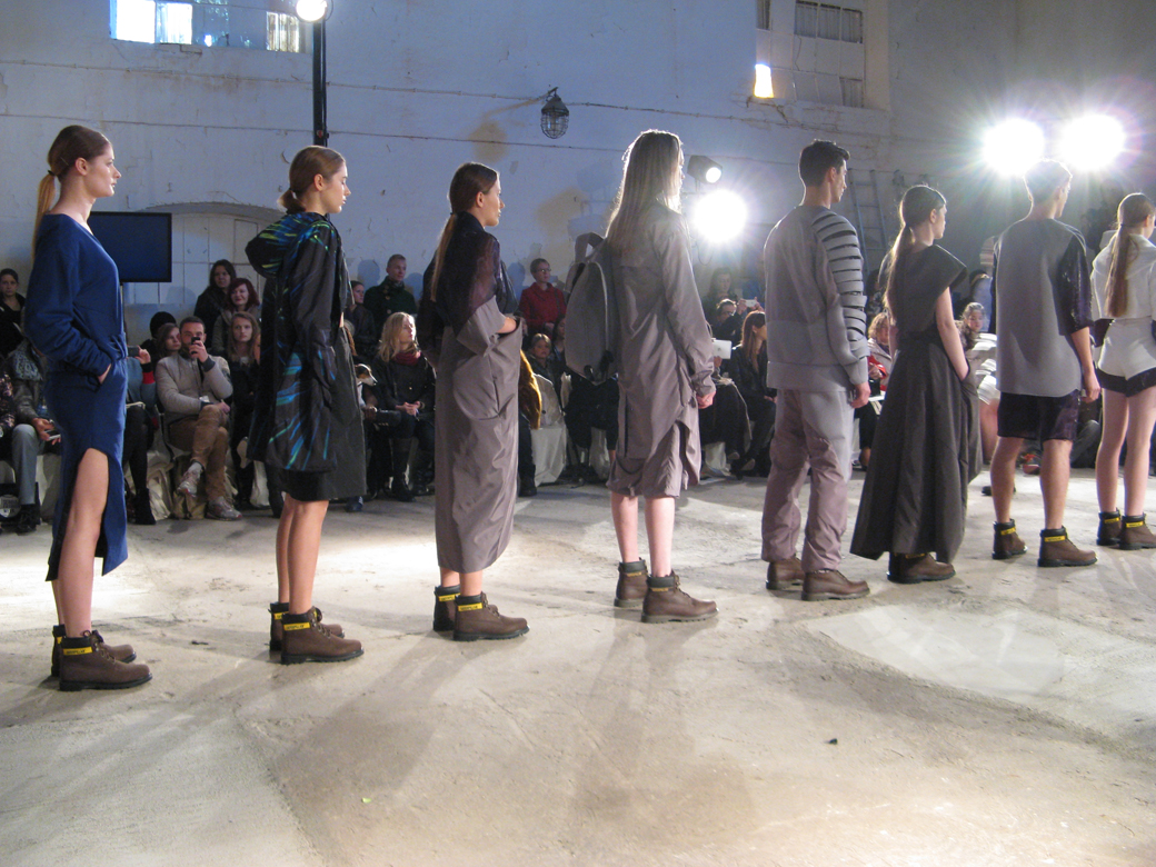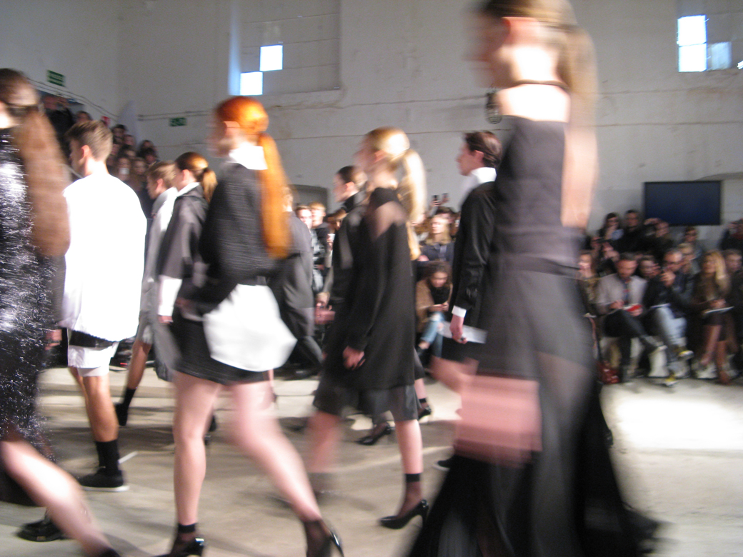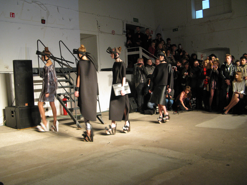 Początek pokazu był lekko nużący. A to za sprawą kilku pierwszych sylwetek łudząco do siebie podobnych. Projektantka chciała bowiem pochwalić się multibarwnymi nadrukami. Wszystko byłoby dobrze, gdyby nie to, że te już się trochę przejadły… Ciekawiej zrobiło się w drugiej części show, kiedy na wybieg wkroczyły modelki ubrane w hebanowe kreacje o obszernych geometrycznych kształtach. To, że forma jest tu najważniejsza podkreślały konstrukcyjne futurystyczne nakrycia głowy i buty.