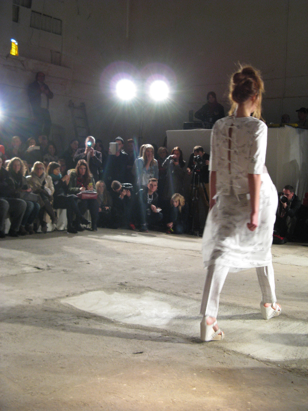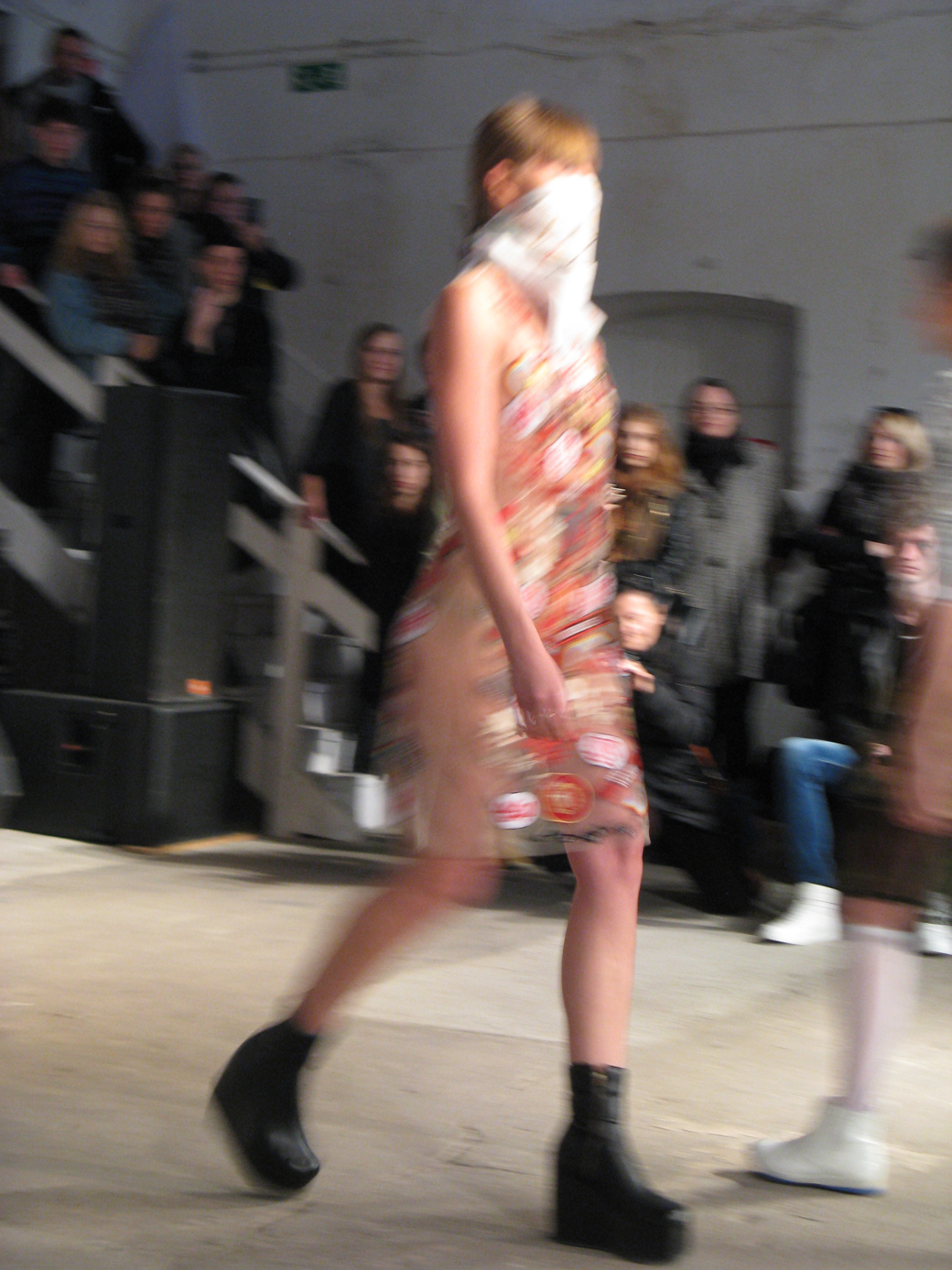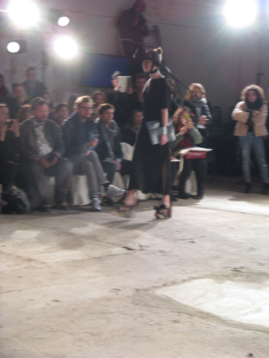 Początek pokazu był lekko nużący. A to za sprawą kilku pierwszych sylwetek łudząco do siebie podobnych. Projektantka chciała bowiem pochwalić się multibarwnymi nadrukami. Wszystko byłoby dobrze, gdyby nie to, że te już się trochę przejadły… Ciekawiej zrobiło się w drugiej części show, kiedy na wybieg wkroczyły modelki ubrane w hebanowe kreacje o obszernych geometrycznych kształtach. To, że forma jest tu najważniejsza podkreślały konstrukcyjne futurystyczne nakrycia głowy i buty.