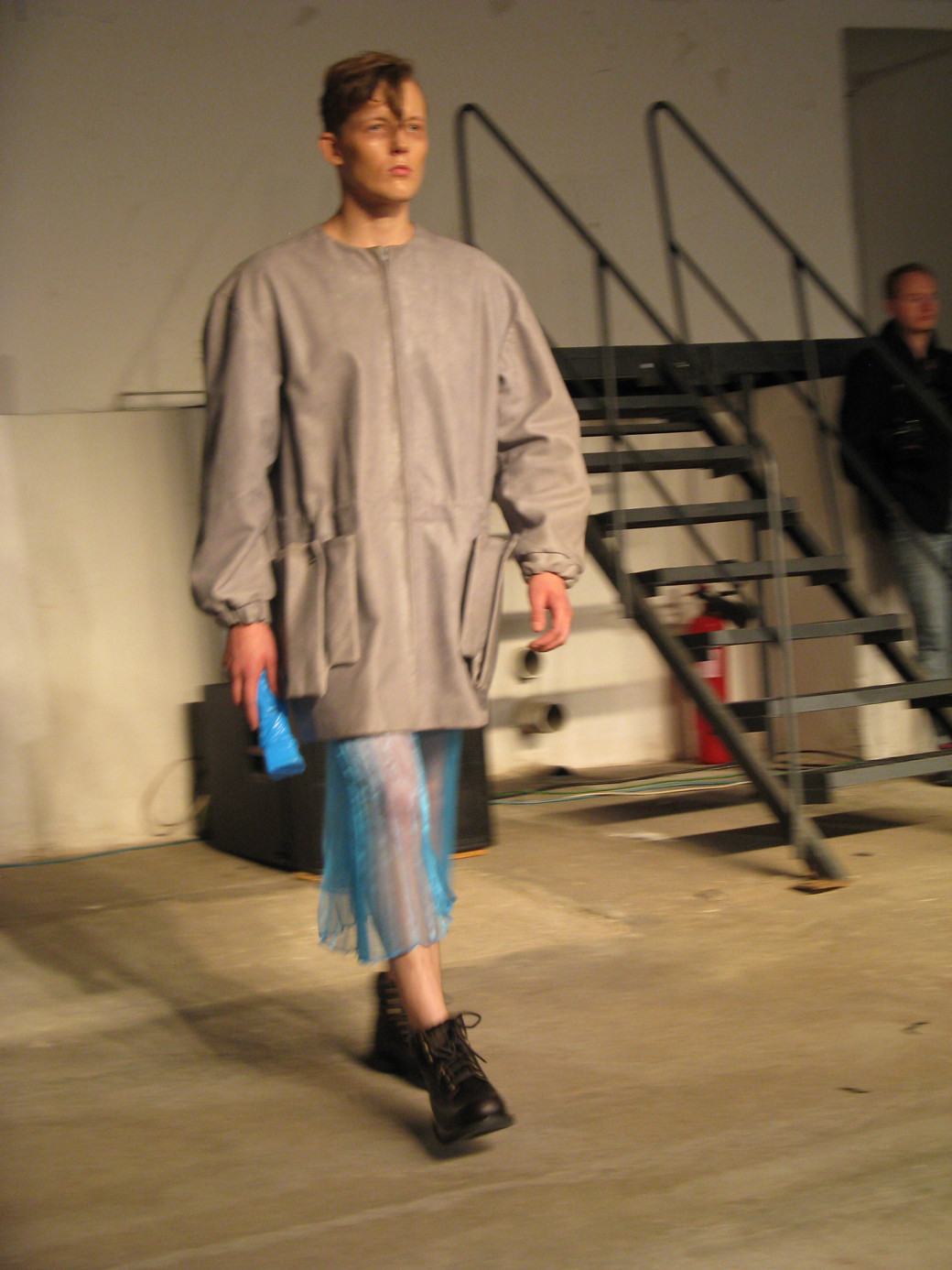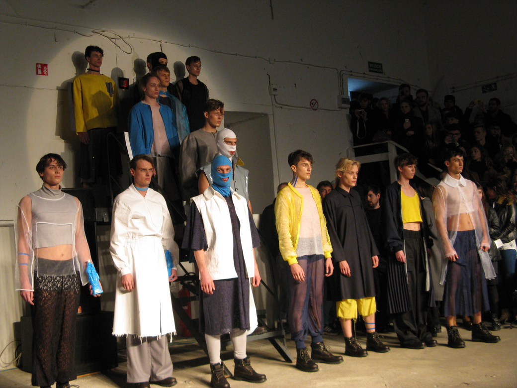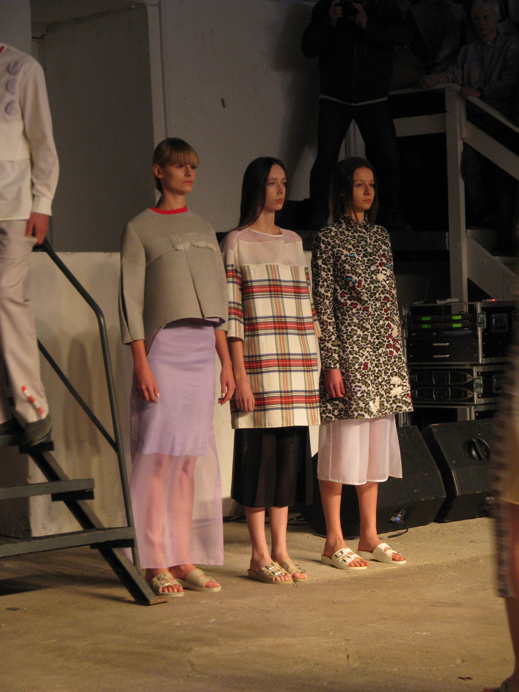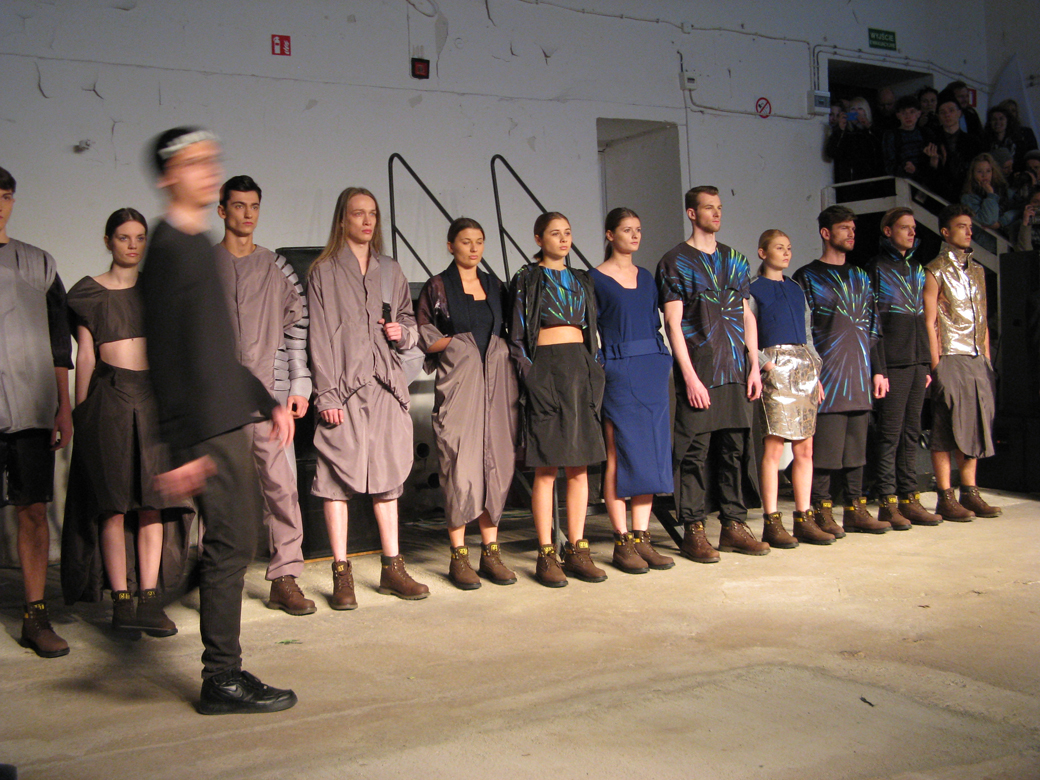 Choć założyciel marki – Maksymilian Gorockiewicz – jest dopiero studentem drugiego roku projektowania na łódzkiej ASP, cechuje go dojrzałość myślenia o kolekcji i jej promowania (świetne zdjęcia wizerunkowe miałam okazję zobaczyć podczas obrad Rady Programowej strefy OFF). Kolekcja mimo że bogata w inspiracje i środki artystycznego wyrazu, nie sprawiała wrażenie nimi przeładowanej. Tworzona jakby z myślą o współczesnych buntownikach, a nawet rewolucjonistach – wykorzystywała motyw rewolweru – powtarzający się w formie haftów i nadruków, nawiązywała do odzieży militarnej (bogactwo pakownych kieszeni) i stylu grunge (niewykończone koszule i dżinsowe kamizele). Mocne, typowo męskie elementy garderoby występowały jednak w zestawieniach z plisowanymi spódnicami czy prześwitującymi, siateczkowymi bluzami. Ciekawe było np. połączenie kurtki bomberki i plisowanego płaszcza. Plus za intensywne kolory – żółty i niebieski oraz udany dobór różnorodnych tkanin.