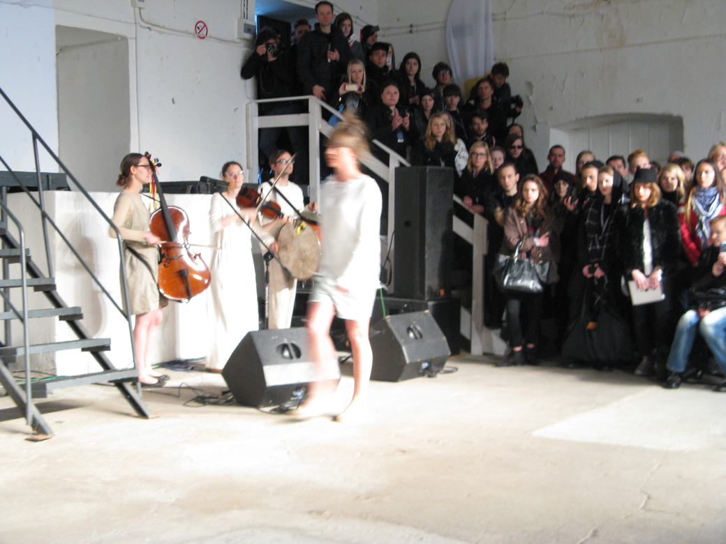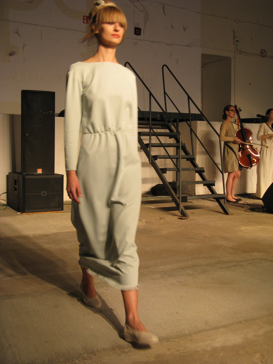 Kolekcja „Messis SS 2015“ to udany mariaż folkloru z minimalizmem. Choć na wybiegu pojawiły się kłosy zbóż oraz cekinowe krzyże tworzące powtarzające się motywy na ubraniach uszytych z naturalnych tkanin (bawełna, len), a do pokazu przygrywał zespół ludowy, wcale nie było przaśnie. Projektantka sięgnęła bowiem po charakterystyczne dla siebie proste formy – tym razem nawiązujące do ubrań kobiet i mężczyzn pracujących przy żniwach i stonowaną kolorystykę – kolory ziemi w rozbielonym wydaniu, a kapela – „Gęsty Kożuch Kurzu“ grała naprawdę dobrze! Charakteru kolekcji dodał brak wykończenia niektórych elementów – dołów płaszczy i sukienek o długości 7/8 czy nonszalanckich połów kurtek, szlachetności – precyzyjnie poprowadzone cięcia. Moi faworyci – skromna pastelowa sukienka delikatnie ściągnięta gumką w talii oraz biała bluzka z postrzępionym, wręcz prującym się karczkiem obok ascetycznych koszul i spodni bez zastrzeżeń sprawdzą się w warunkach miejskich. Doskonałe!