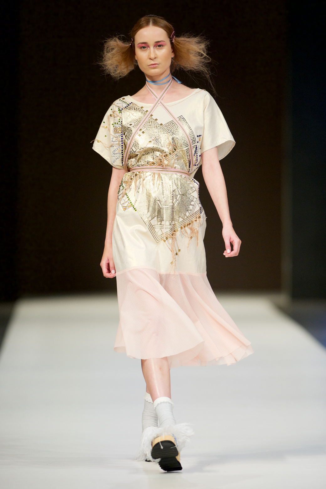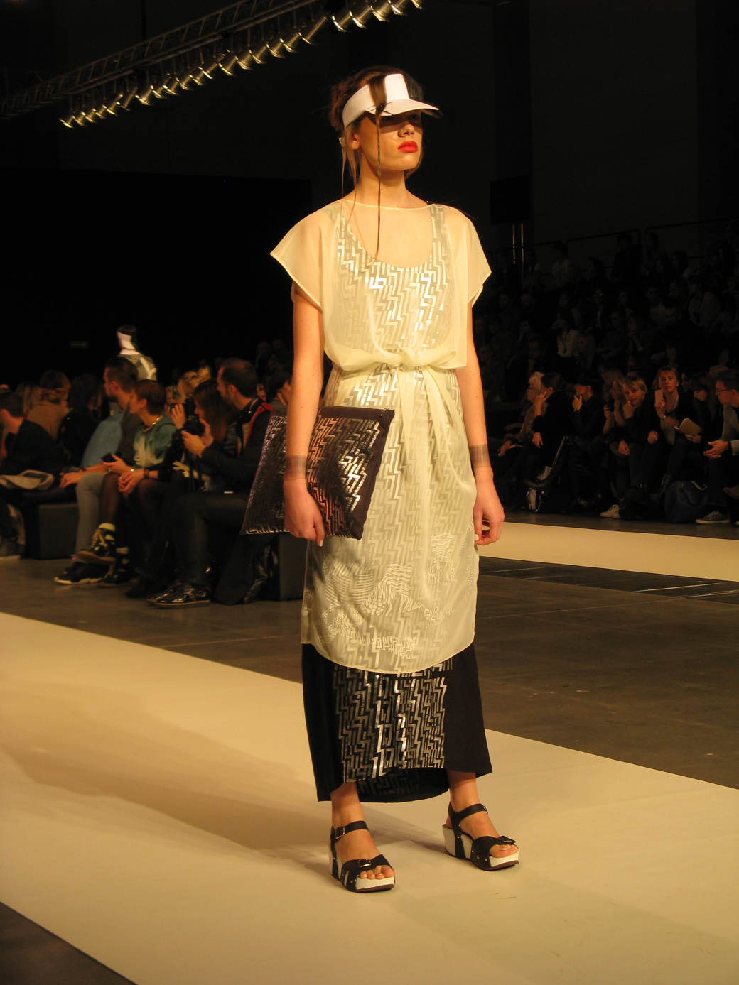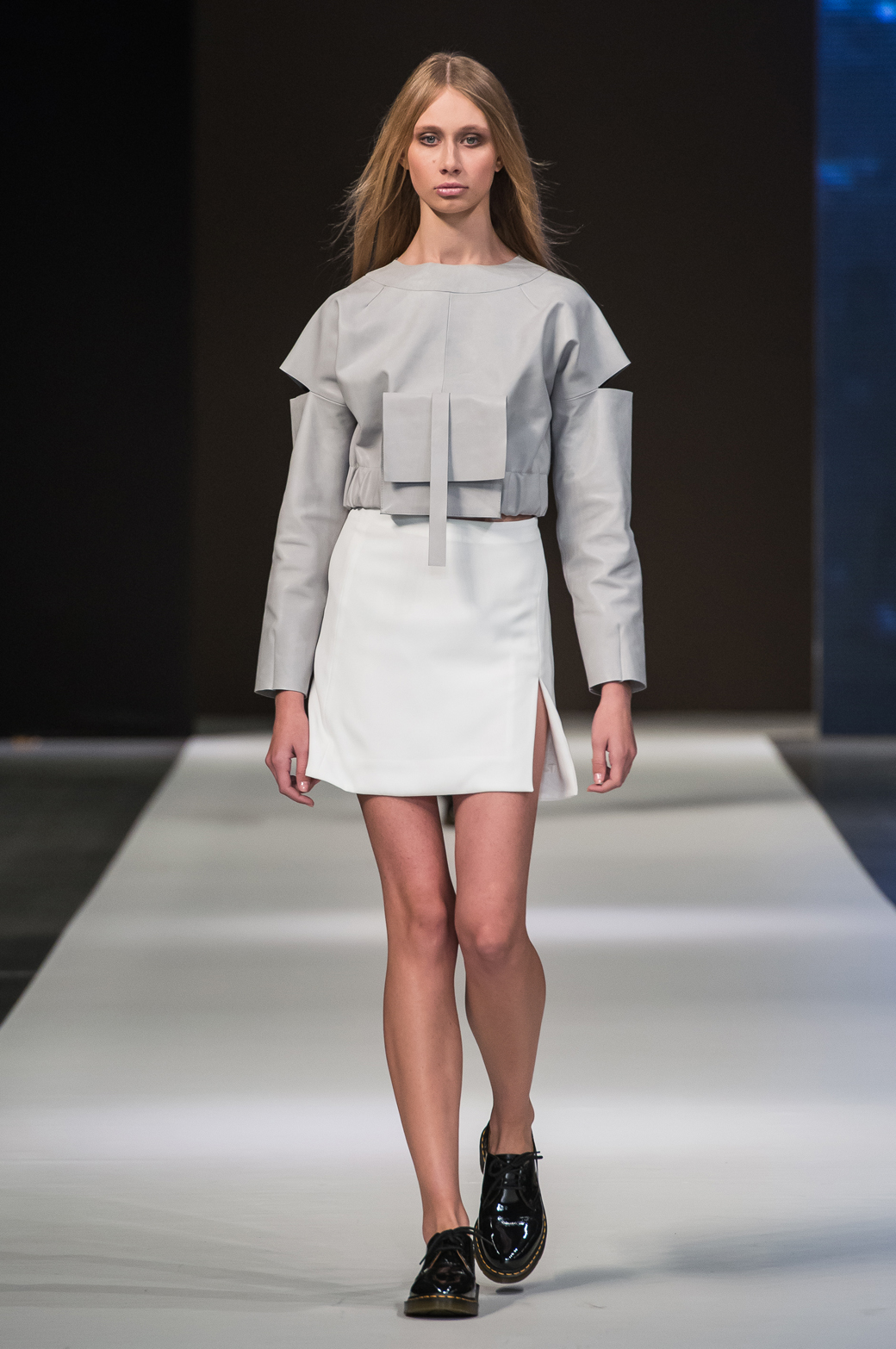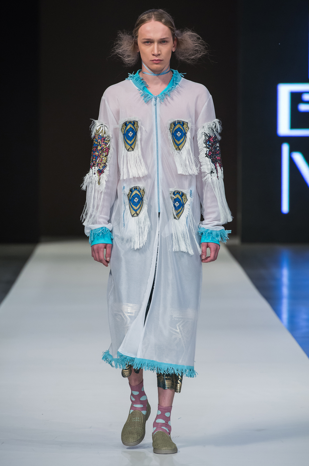 Do tej pory mogliście nie spotkać się z marką Nanko, bo to jej debiut na Fashion Week Poland. W dodatku zaprezentowana linia powstała na bazie kolekcji dyplomowej projektantki i założycielki marki (dyplom został pozszerzony o nowe modele)! Kolekcję cechują jednak profesjonalizm, wysoka jakość wykonania, dbałość o detale. Ubrania, choć proste są świetnie skrojone, uszyte z wełny, bawełny, wiskozy i naturalnych skór. Charakterystyczny efekt zagięć na tych ostatnich projektantka uzyskała mozolnie i własnoręcznie zaprasowując je żelazkiem. Mistrzowskie są detale: zakładki, kieszonki, wycięcia. Ubrania mogą pochwalić się także doskonale dobranymi podszewkami, np. w białej kurtce skórzanej na podszewce w tym samym kolorze widnieją liczne seledynowe kropeczki. Wszystko jest tu przemyślane i na właściwym miejscu.