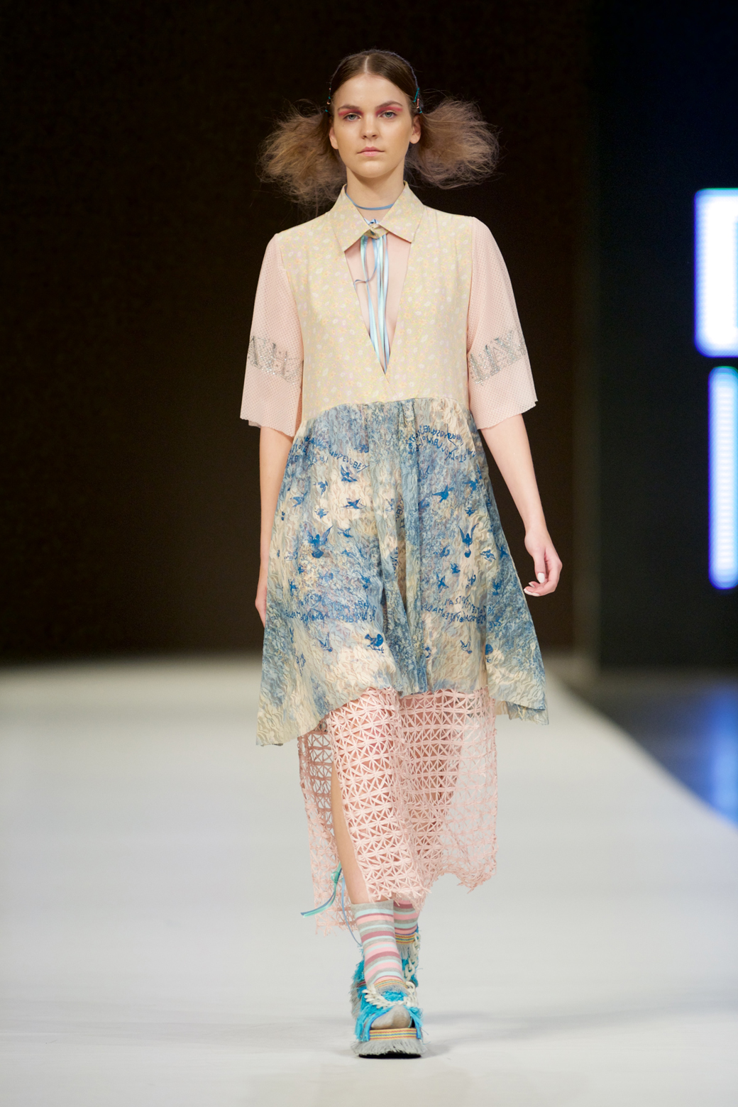 Ola Bajer – założycielka marki Bola – dojrzała. Zaprezentowana kolekcja jest dotychczas najlepszą w jej karierze. Choć konsekwentnie utrzymana w lekko sportowym duchu i dobra do noszenia na co dzień może poszczycić się eleganckim sznytem. Ola dresy w printy zamieniła na transparentne sukienki i koszule z kołnierzykami. Sięgnęła po klasyczne odcienie: biel, czerwień, czerń i szarości. Nie jest jednak nudno. Kolory rozświetlają metaliczne wykończenia i nadruki, błysk i mat stanowią udaną parę, a warstwowe stylizacje są doskonałe. Charakteru dodają daszki i okrągłe okulary o lustrzanych szkłach. Prawdziwe cuda dzieją się jednak przede wszystkim w konstrukcji ubrań. Tylko spójrzcie na te koszule!