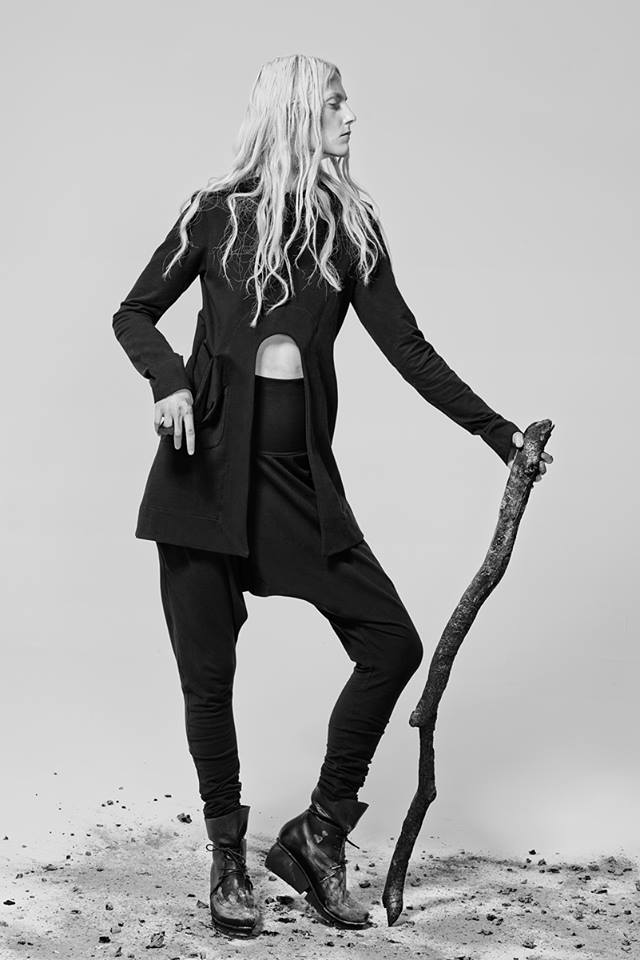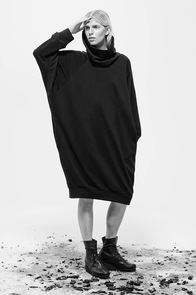 O ostatniej kolekcji marki wearso. – WEARRIOR – chciałam napisać, kiedy ta tylko się pojawiła, a właściwie, od kiedy po raz pierwszy zobaczyłam promujące ją zdjęcia. Charakterne i tajemnicze, ze słynną kostiumografką Dorotą Roqueplo w roli jednej z modelek (przypadkowo lub nie marka dołączyła w ten sposób do grona tych, które porwała fala zachwytu nad dojrzałym pięknem, i dobrze!). Czas jednak płynął, a na blogu nic… Z letargu wybudziła mnie informacja, że rozpoczęła się wyprzedaż kolekcji – do 2 lutego wchodzące w jej skład ubrania można kupić o 30% taniej (zarówno w salonie marki na Mokotowskiej 62 jak i w sklepie internetowym: http://wearso-store.com/). To więc doskonały, i być może ostatni, moment, by upolować najlepsze kąski. A tych jest całkiem sporo! Założycielka i projektantka marki, Ola Waś, z bawełnianej dzianiny stworzyła bowiem intrygujące rzeźbiarskie formy. To za sprawą licznie występujących zakładek, marszczeń, splotów oraz zdecydowanych nieoczywistych cięć, które powodują, że nie do końca wiadomo, gdzie kończy się jeden element garderoby, a zaczyna drugi oraz ile warstw ma się na sobie. Wyraźnie widać więc nawiązania do twórczości japońskich projektantów tworzących w duchu dekonstrukcji – Rei Kawakubo i wykreowanego przez nią looku „Hiroschima chic“ oraz Yoshiego Yamamoto. Jednak podczas gdy w ich kreacjach płeć całkowicie uległa zatarciu, w kolekcji Oli Waś obok ubrań świetnie kamuflujących sylwetkę, takich jak spodnie z obniżonym krokiem TAI czy żakiet i sukienka TAKEDA, pojawiają się także i takie, które w dyskretny sposób podkreślają jej atuty, jak choćby sukienki FUDO i TOMOMI. Depresja i chęć schowania się przed światem nie są więc tak silne, jak mogłaby sugerować czerń, w której utrzymana jest linia ubrań (dla optymistów wybrane modele powstały zresztą także w innych odcieniach – ciemnoniebieskim, bordowym i szarym). W kolekcji pojawiają się także nawiązania do strojów Samurajów, stąd pewnie jej nazwa, będąca grą słów „wear“ (ang. nosić) i „warrior“ (ang. wojownik). Mnie szczególnie ujęły mocno zaznaczone ramiona.