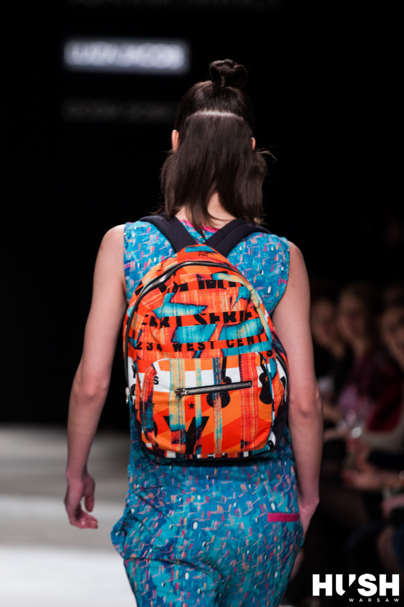 Fani streetowej marki, której ubrania z bawełny organicznej krzyczą kolorami i słyną z bogactwa deseni, także i tym razem nie byliby rozczarowani. Prezentując multibarwne ubrania noszone (najczęściej) warstwowo, Luiza odarła słowo „komplet“ z jego dawnego pejoratywnego wydźwięku. Na sukienki do połowy uda narzuciła bluzy albo obszerne chusty, szerokie spodnie i spódnice zestawiła z kurtkami bomberkami, spod których dumnie wystawały proste w formie koszule, a sportowe topy połączyła z koszulami oversize. Wszystko to idealnie dopasowane kolorystycznie. Kontrastowe były natomiast detale i akcesoria – szerokie gumy optycznie dzielące kombinezon czy sukienkę na dwie części, plecak albo buty.