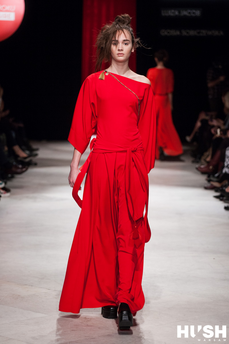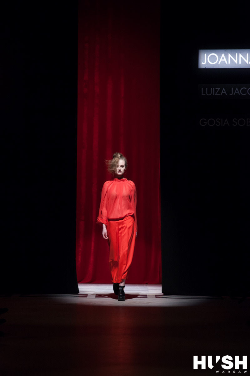 Joanna Hawrot zachwyciła ubraniami inspirowanymi kulturą japońską z dużą dozą wpływów etnicznych. Pojawiły się liczne zakładki nadające strojom formy niczym z origami oraz kroje inspirowane kimonem. Podziwialiśmy eleganckie plisy i misterne upięcia trzymające w ryzach luźne fasony. Przeskalowane mankiety oraz kołnierzyki przechodzące w szale. Na tym projektantka powinna poprzestać. W kolekcji pojawiły się jednak także bliskie ciału kreacje w całości uszyte z czarnej koronki albo mieniące się dużych rozmiarów cekinami. Ich wprowadzenie rozmyło przekaz i osłabiło nieco wrażenie, jakie Hawrot mogłaby wywrzeć, prezentując wyłącznie „konstrukcyjną“ linię. Ale i tak mieliśmy niedosyt.