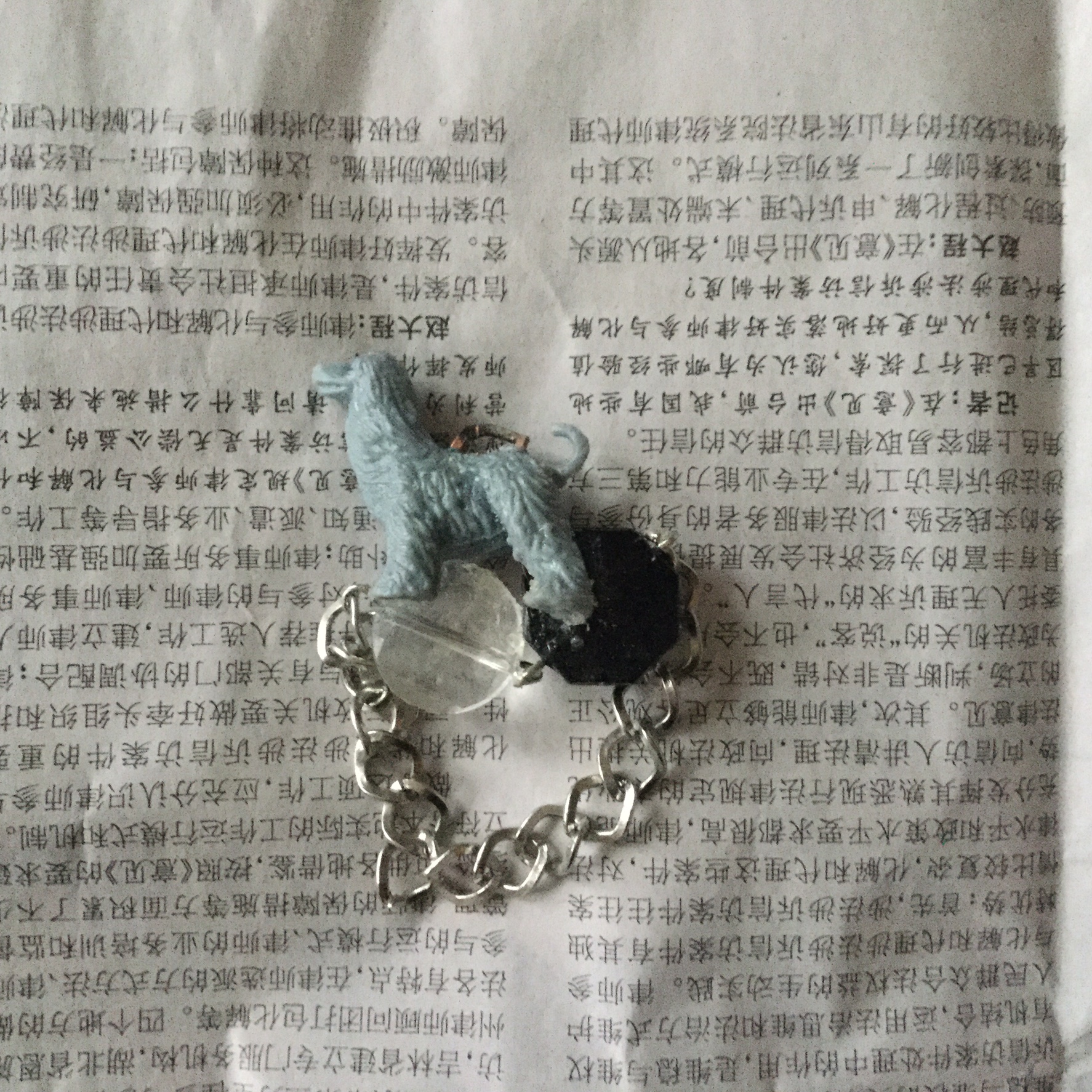Biżuteria Sławka powstaje bowiem z tego, co większość uznałaby za śmieci. Składa się z fragmentów lalek, zabawkowych żołnierzyków i klocków, które projektant zestawia z elementami dewocjonaliów. Bursztyn łączy z plastikiem, koraliki z metalem. Plastikowym psom zakłada druciane aureole. Sacrum miesza z profanum. Pierwsze skojarzenie? Arkadius. Tyle tylko, że biżuterii Sławka daleko do pretensjonalności twórczości „polskiego Alexandra McQueena“. Możę się mylę (czas pokażę), ale mam wrażenie, że jest autentyczny. Nie szuka kontrowersji na siłę. Nie robi nic pod publiczkę. Po kicz sięga świadomie, budując obraz współczesnej cywilizacji. Jak mówi, chce łączyć asamblaż (kolaż w wersji trójwymiarowej) i fascynację Władysławem Hasiorem z upodobaniem do Banksy’ego, którego dzieła mija w Londynie na każdym kroku. I tworzyć talizmany (nie amulety). Czy przyniosą mu szczęście?