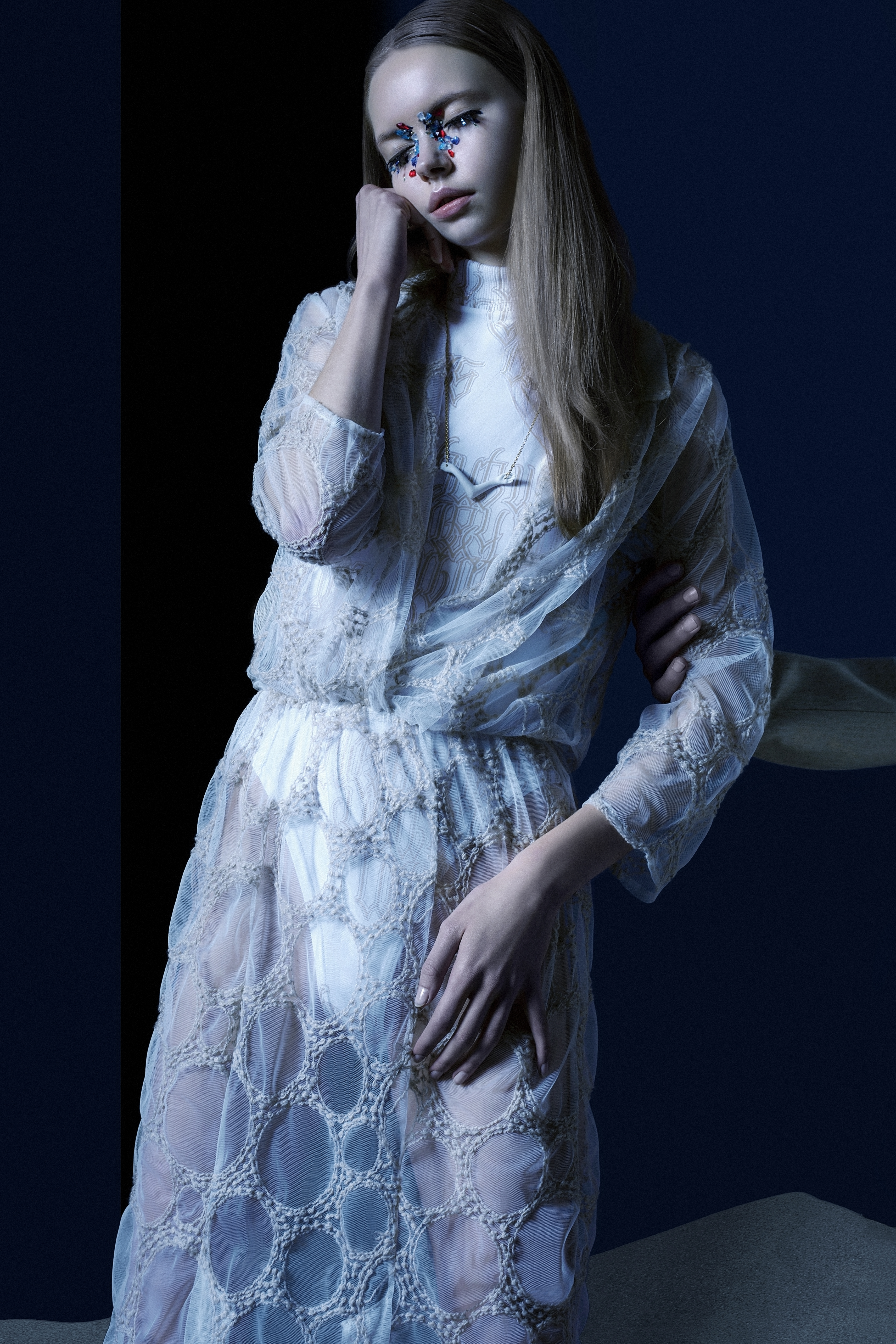 W onirycznym klimacie utrzymane są nie tylko tajemnicze, ręcznie robione zdobienia – sprawiające wrażenie poruszonych, uchwyconych tylko na chwilę – ale i niektóre tkaniny – półprzezroczyste, lekkie, niekiedy też strukturalne. Wystarczy spojrzeć na sukienkę midi, jakiej nie powstydziłaby się współczesna Ofelia albo transparentny płaszcz o prostym fasonie oversize. Budzą skojarzenia z mgłą unoszącą się nad moczarami albo duchami zamieszkującymi ruiny zamczysk. O tym, że znajdujemy się jednak w rzeczywistości świadczą elementy garderoby, z jakimi są zestawiane – nowoczesne, utrzymane w estetyce sportowej elegancji. Spod zwiewnych sukni wystają (kojarzone z aerobikiem) body. Obok ażurowych bluzek pojawiają się nonszalanckie parki i inne kurtki o miejskim charakterze. Są też eleganckie spodnie (długie i krótkie) oraz kamizele z wyrazistymi połami. Jak widać Ola podróżuje nie tylko przez senne obrazy, ale i legendarne motywy z lat 80. To, co mistyczne, przekornie łączy z tym, co użyteczne, miesza przeszłość i teraźniejszość – i robi to z ogromnym wyczuciem. Kto by się spodziewał, że tak odległe stylistycznie nurty można ze sobą pogodzić? W dodatku, projektantka , choć wyraźnie czerpie z aktualnie obowiązujących trendów, robi to na swój własny sposób. Takich rzeczy nie zobaczycie nigdzie indziej. Najwyraźniej naprawdę musiały się Boli przyśnić.