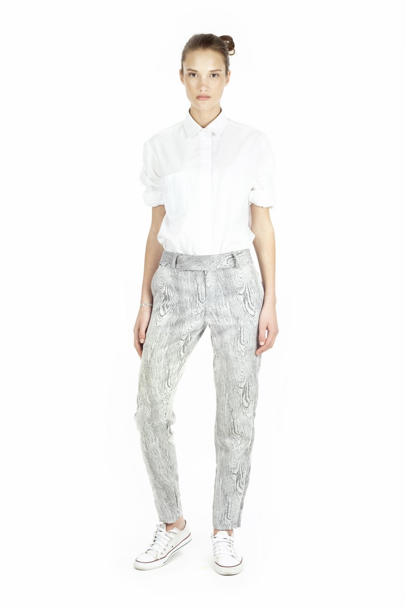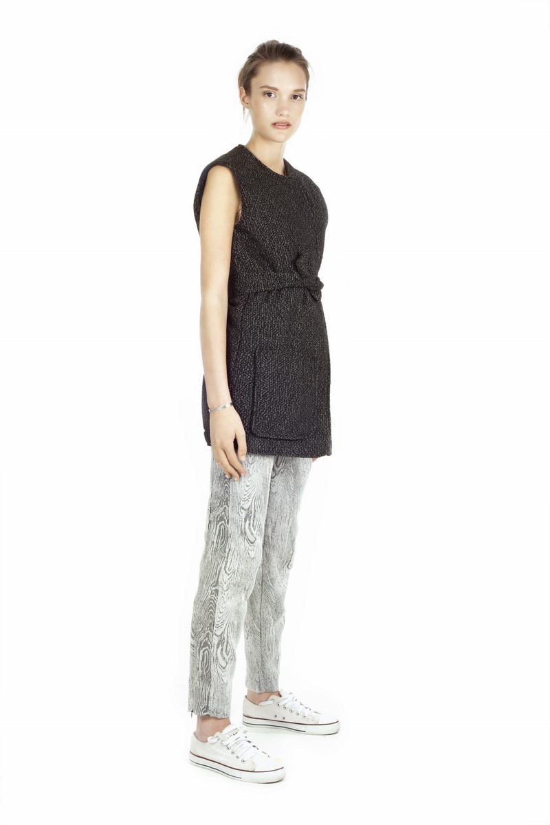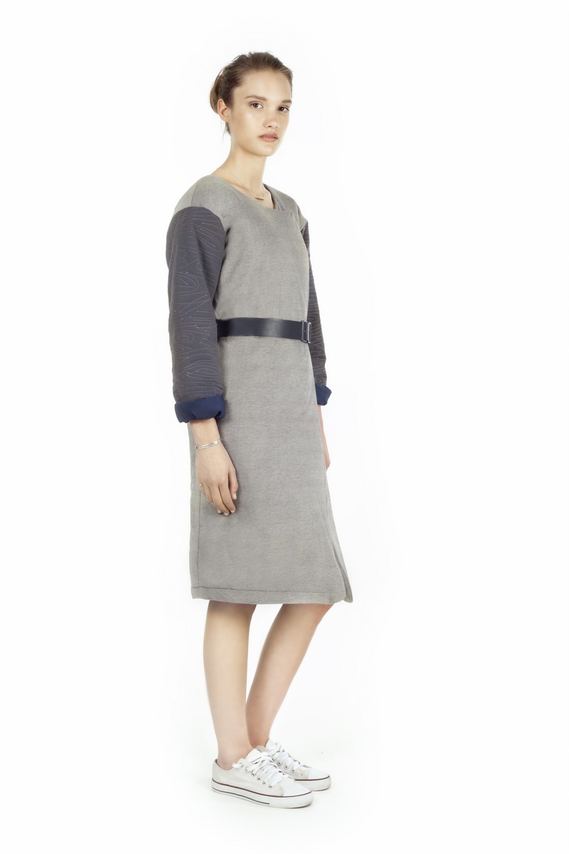 Przyszedł czas na moją kolekcję magisterską, a to poważna sprawa, prawda? Nie chciałam zrobić kolejnej kolekcji damskiej „inspirowanej tym czy tamtym”. To było dla mnie za mało. To był moment, kiedy rozbudziło się moje zainteresowanie odpowiedzialną modą. Na potrzeby kolekcji dyplomowej postanowiłam więc stworzyć autorską tkaninę. Wyprodukowaną lokalnie i z wyjątkowych surowców. Padło na poliester z recyklingu butelek PET. Marzyło mi się włókno mleczne albo celulozowe. Ale w tamtym momencie bardziej realne było wykorzystanie właśnie butelek. Nie miałam żadnego budżetu, jedynie kartę kredytową… Pierwsze kroki skierowałam na Politechnikę Łódzką, o pomoc zwróciłam się do firm, które miały cokolwiek wspólnego z recyklingiem PET, a było ich wtedy w Polsce kilka. Pytałam, dzwoniłam, pisałam maile. Wreszcie natrafiłam na producenta przędzy i tkanin, który planował wprowadzić coś z recyklingu do swojej oferty (przyznam szczerze, że do dziś nie wiem czy to zrobił). Kiedy nie ma się budżetu, w rozmowach z firmami przydaje się pewny krok i umiejętność opowiadania z pasją o tym co się robi – a raczej, co chce się zrobić. Zaletą bycia projektantem w Polsce jest to, że zakłady produkcyjne tu są i często należą do kilku osób, rodziny, a nawet do jednej osoby. To otwiera możliwości.